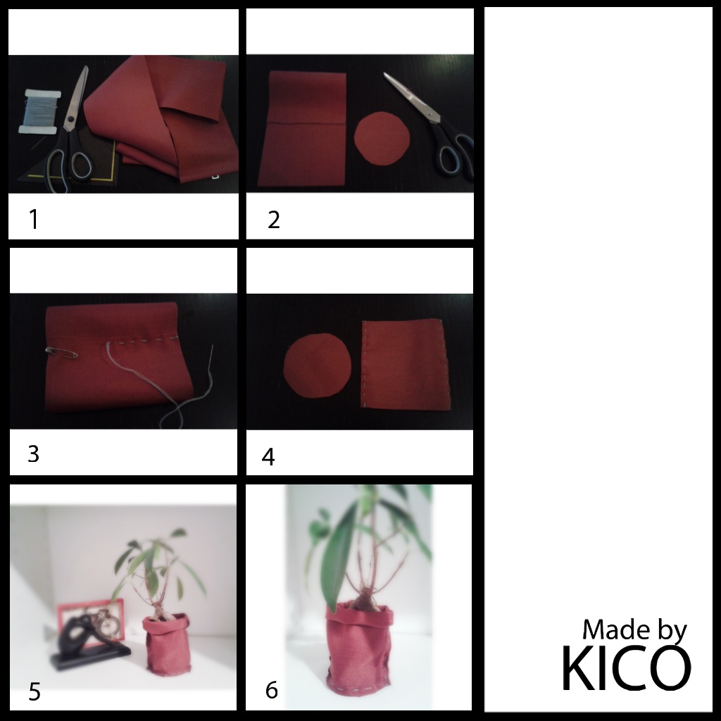 Anleitung: Aus dem Stoff einen Kreis ausschneiden (am besten mit einem Zirkel vorzeichnen). Danach den Umfang des Kreise berechnen und den Stoff dementsprechend lang abschneiden. Da ich von der Höhe her sowieso begrenzt war (quasi Lamellenbreite) musste ich nur noch die Länge beachten. Unbedingt 1,5 cm Stoff dazurechnen – für die Naht. Das Lange Stoffstück mit dem Wollfaden seitlich zusammen nähen. Danach den Boden unten dran nähen, 1,5 cm vom Boden nach oben beginnen. Und schon ist der Stoffübertopf fertig genäht. Nur noch oben ein- oder zweimal umstülpen, fertig.